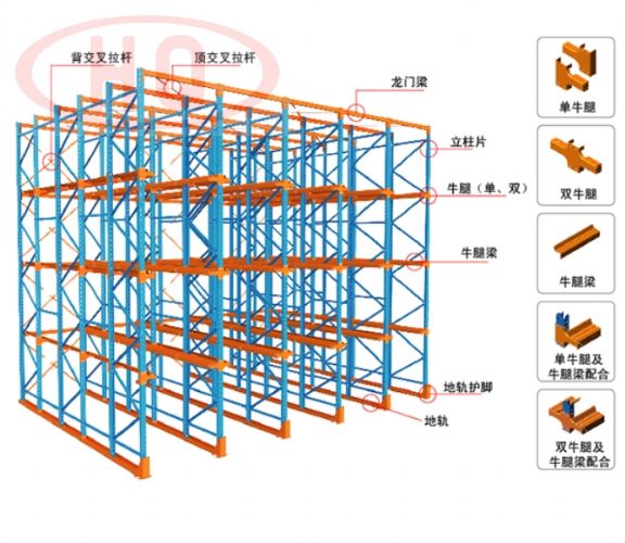 駛?cè)胧截浖芙Y(jié)構(gòu)原理是把數(shù)排立柱片連接起來(lái),沒(méi)有橫梁結(jié)構(gòu),用頂梁支撐,采用牛腿與托盤導(dǎo)軌連接而成,托盤貨物架在托盤導(dǎo)軌上。叉車可直接駛?cè)胴浀纼?nèi)進(jìn)行存取貨物,存放時(shí)先內(nèi)后外,取貨時(shí)先外后內(nèi),典型的先進(jìn)后出存儲(chǔ)理念,倉(cāng)庫(kù)空間利用率約為70%。